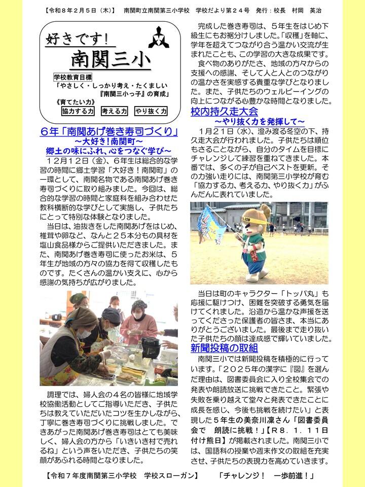 NO.24 260205 学校だより R7「好きです! 南関三小」24号(南関第三小学校)(送付用・HP用).pdf