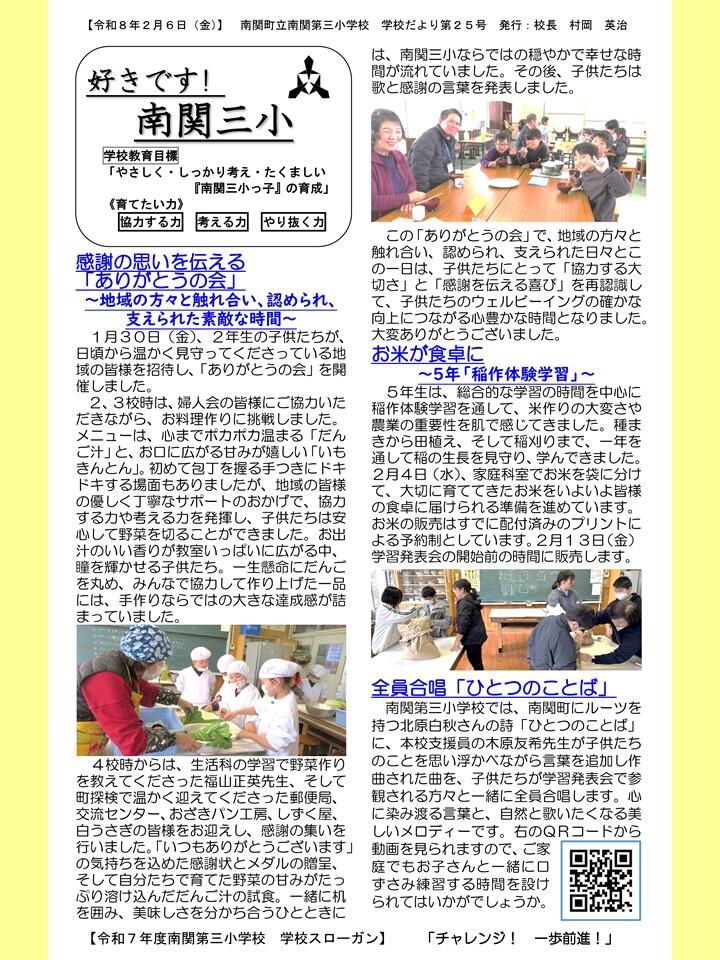 NO.25 260206 学校だより R7「好きです! 南関三小」25号(南関第三小学校)(送付用・HP用).pdf