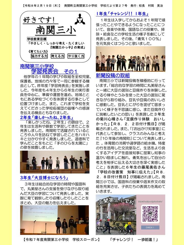NO.27 260219 学校だより R7「好きです! 南関三小」27号(南関第三小学校)(送付用・HP用).pdf