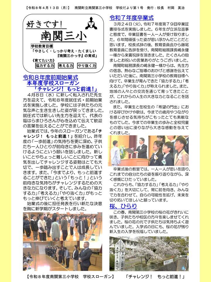 NO.1 260413 学校だより R8「好きです! 南関三小」1号(南関第三小学校)(送付用・HP用).pdf
