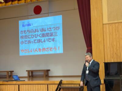 「気持ちのよいあいさつが校舎に響く南関第三小であってほしい」と願っています。あいさつは、人と人をつなぐ大切な第一歩です。明るい声であいさつができる学校は、子どもたちが安心して学び、挑戦できる学校だと考えます。