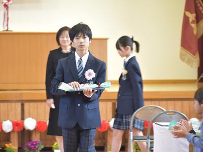 卒業式の祝詞の中で、町長からの祝詞には次のように本校の特色と卒業生の頑張りを述べていただきました。