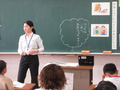 4年生の教材は、『わたしの家族』で、ねらいは「 しおりさんの家族の思いを考えることを通して、自分にとって家族はかけがえのないものであることに気付き、家族の一員としてみんなで協力し合って楽しい家族をつくろうとする態度を育てる。」でした。