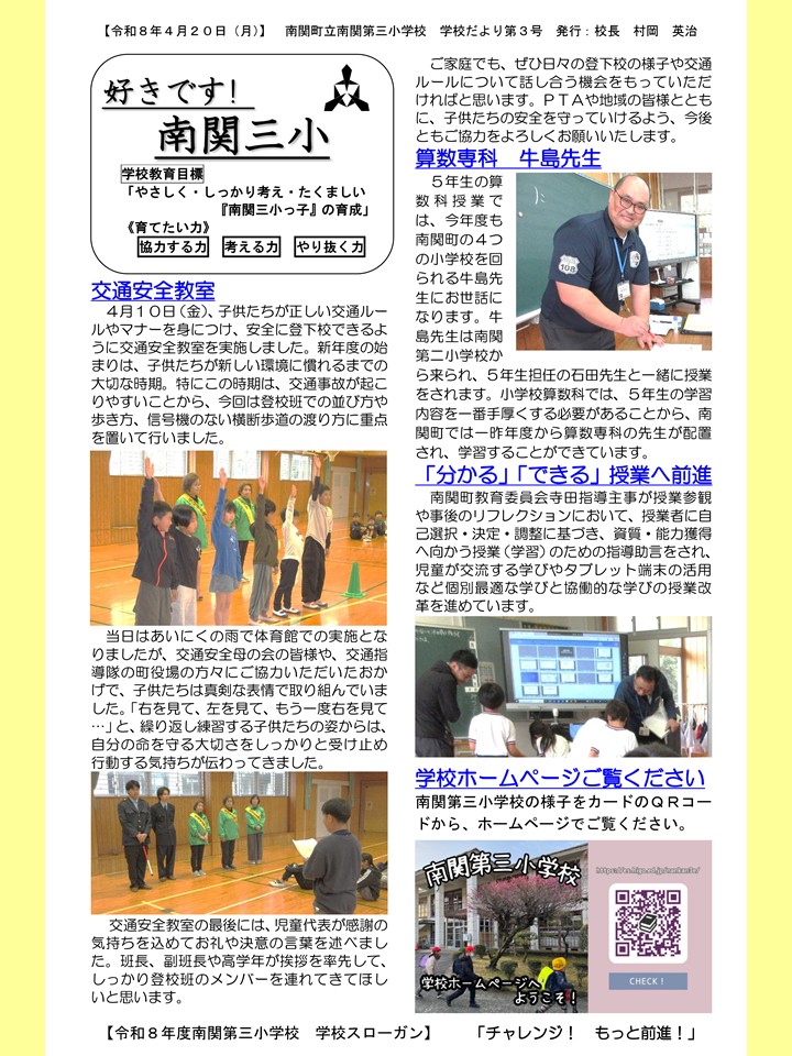 NO.3 260420 学校だより R8「好きです! 南関三小」3号(南関第三小学校).pdf