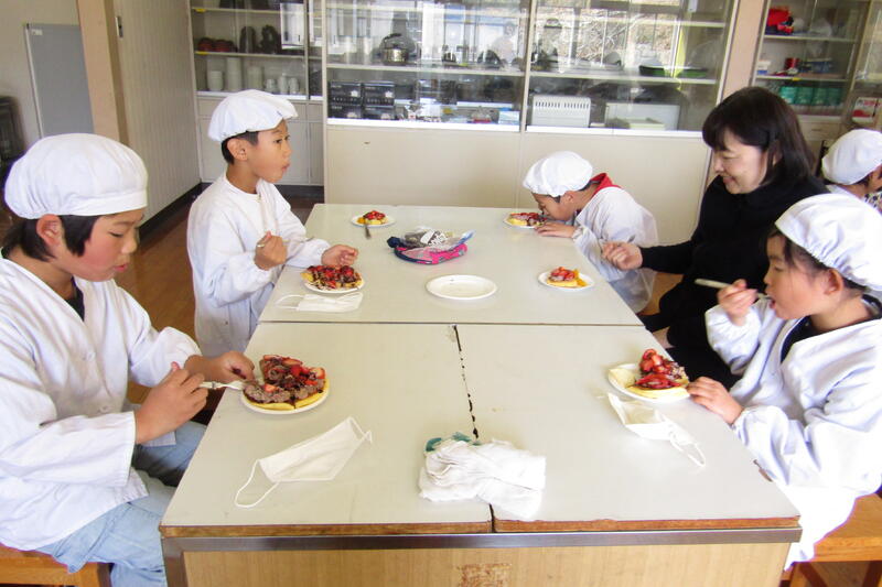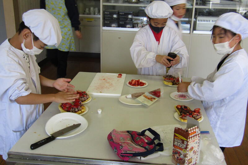 3年生は、冬休み前にお楽しみ会を学級活動でしました。子どもたちが話し合って、ホットケーキを作ることになったそうです。ホットケーキに飾り付けをするフルーツやクリーム、カラーのチョコ、アラザンなどは、グループで分担して持ち寄っていました。ホットケーキを上手に裏返して焼いている子どもたちが多くて、びっくりしました。各グループ毎に飾り付けが違いましたが、どれも美味しそうに上手に飾り付けをしていました。お世話になった先生方にもふるまってくれて、先生方にも幸せのお裾分けをしてくれました。一足早いクリスマスパーティーに参加させてもらい、楽しい時間になりました。子どもたちは、作るのも、飾り付けするのも、食べるもの、友だちと一緒で笑顔がいっぱい見られました。