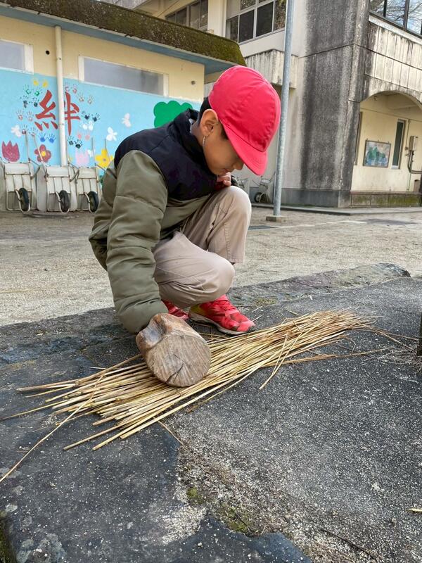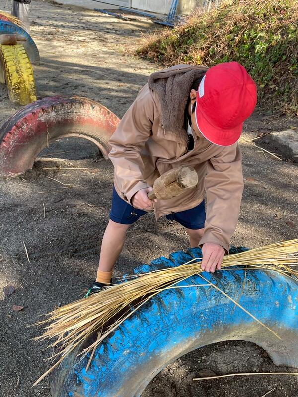 今日はわらぞうりづくりの準備をしました。固いわらを叩いて、柔らかくしておきます。20日にわらぞうりを作るので、その準備をしました。地域の米澤さんと伊藤さんに教えて頂きながらしまいた。次にするわらぞうりが楽しみです。