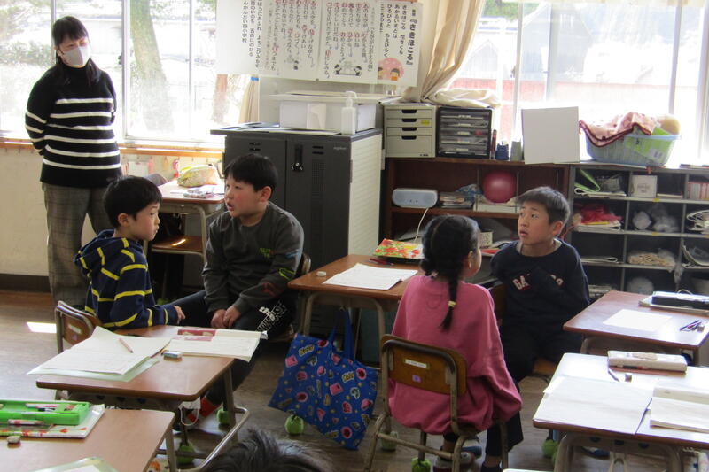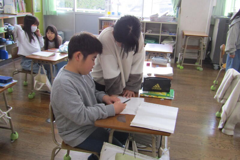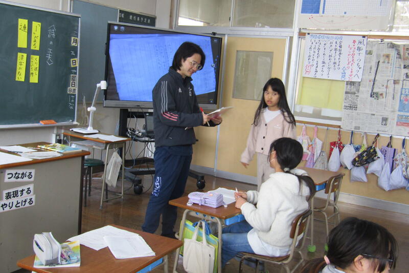 学校だよりでお知らせしたように、12月から1名、1月から2名の先生方が本校の職員として子どもたちの教育に携わっておられます。2月、3月は学習をしっかり身につける大事な時期になります。この時期に、複数体制で子どもたちの指導に当たれることは有り難いことです。練習問題を解いて、学習を確実にする場面などでは、子どもたちが「ミニ先生」として活躍する場面もあります。早く解けた子どもなどがヒントを出したり、丸付けをしたりすることもあります。理解できたと思っても説明できなければ本当に理解ができたとは言えません。説明しながら、説明している子どもは理解を確実にするし、説明をうけた子どもはそれをヒントに理解へ繋げることができます。相互に学習を深めたり、先生との関わりで理解を深めたりして確実に学力がつくようにしています。この学年で身につけなければならないことを3月までに理解して、進級できるようにteam四小で、教室の仲間や職員方と一丸となって学習しています。子どもたちが笑顔で「わかった!」「できた!」と学ぶ喜びを感じて表現してくれるように、みんなで頑張っています。