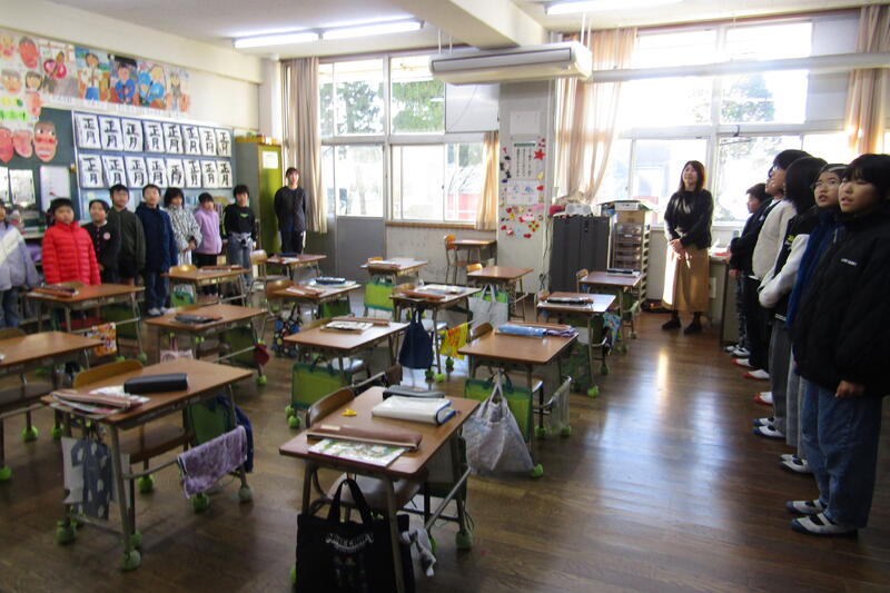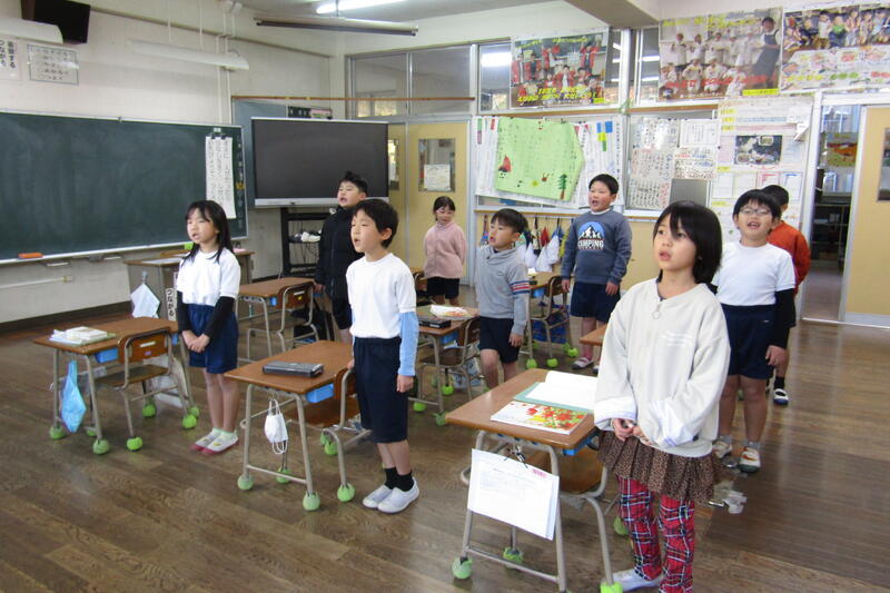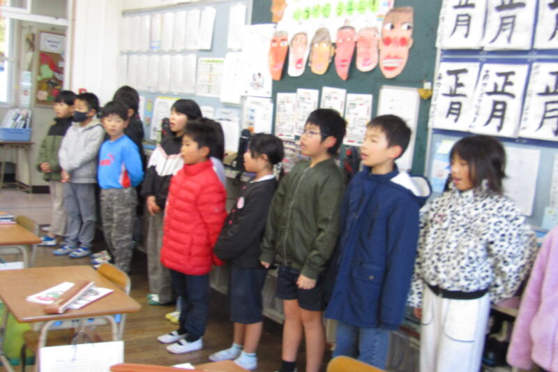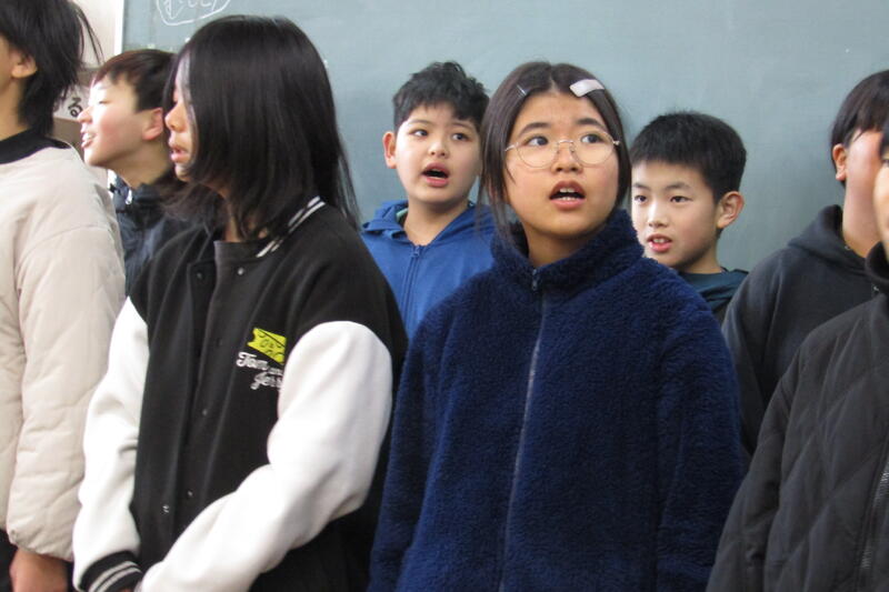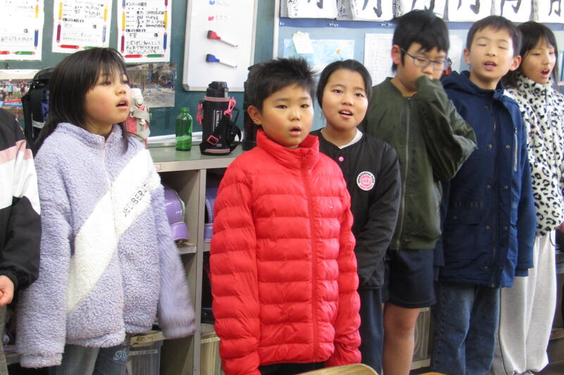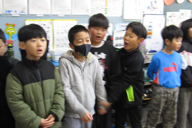 四小では朝の会で月の歌を歌います。時々、他の学年にも声をかけて、2学年で歌うことがあります。今日は、3年生と5年生が一緒に「ともだちはいいもんだ」を歌っていました。「ともだちはいいもんだ」は、メロディーもいいですが、歌詞も素敵です。3年生と5年生と向かい合って歌いました。優しい表情で歌う子どもたちが多く、柔らかい、子どもらしい声が響く、豊かな時間になりました。仲良く月の歌を歌うというお誘いの習慣。四小の伝統にしてほしいです。他の学年と歌うことで、口をのびのびと開けて歌ったり、歌う楽しさをより感じたりできる時間になっています。