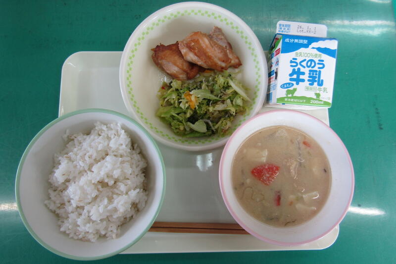 あすか汁は、初めて給食に出てきたメニューです。牛乳で野菜を煮て、味噌を溶いて味付けしたみそ汁です。子どもたちは、初めは珍しいのか、減らす子どももいましたが、後ではおかわりをしていました。あすか汁も体が温まるメニューでした。今後も出てきたらいいなあと思いました。とり肉のてりやきは子どもたちが大好きな給食です。笑顔で、食べていました。今日もおいしくいただきました。ありがとうございました。ごちそうさまでした!