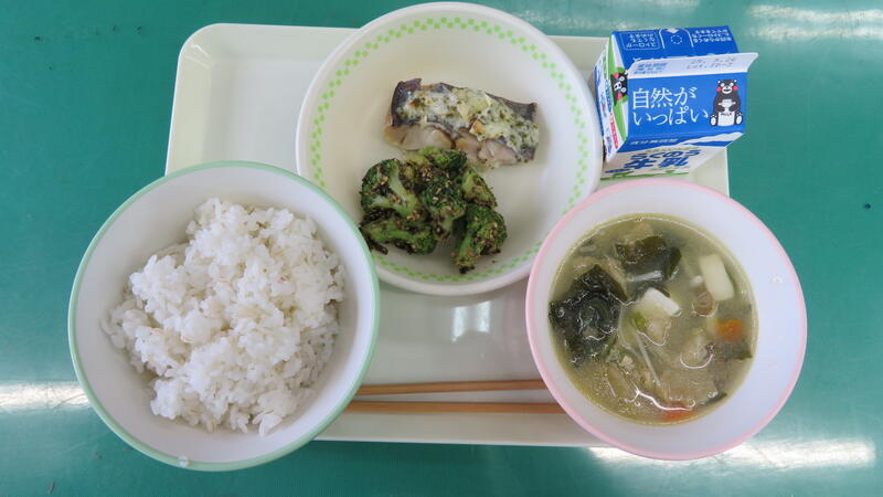 5月12日(月) 本日の給食は、新ごぼうのみそ汁、ホキのタルタル焼き、ブロッコリーの佃煮和え、麦ご飯、牛乳でした。みそ汁には、新ごぼうと南関あげが入っていて、とてもおいしかったです。旬の味が楽しめるみそ汁でした。ありがとうございました。ごちそうさまでした!