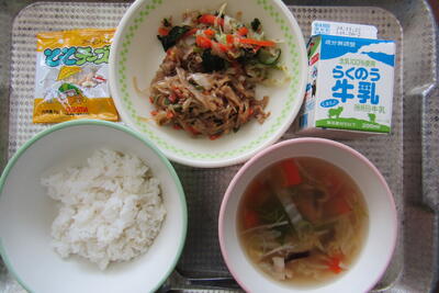 きゅうりのピリ辛、はその名の通り、乱切りしたきゅうりと彩りの薄切りにんじんをほんのり辛みのある味付けで和えたものでした。食べ応えのある食感もあり、辛みは給食らしく抑えめで食べやすかったです。給食当番の子が「きゅうりが苦手」と言っていましたが、無事に食べられたでしょうか。今日もおいしくいただきました。