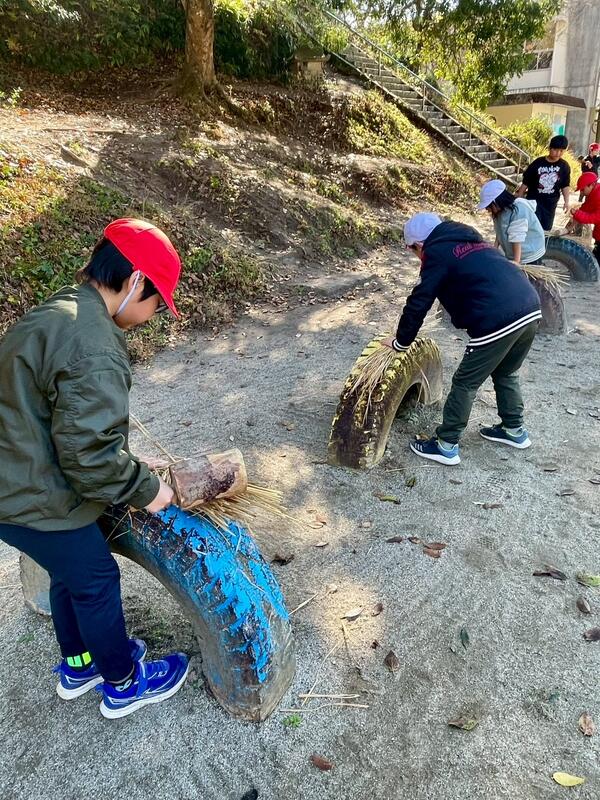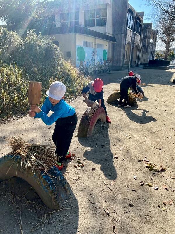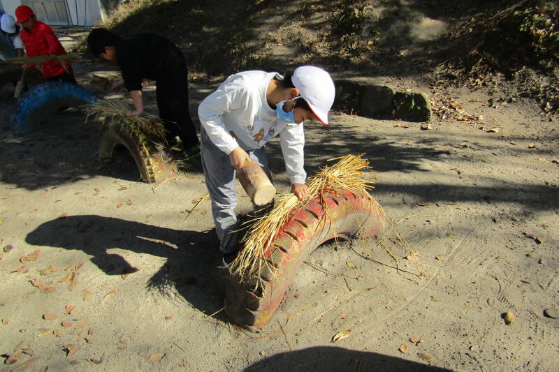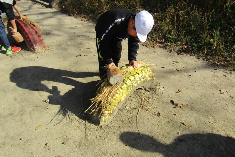 今日はわらぞうりづくりの準備をしました。固いわらを叩いて、柔らかくしておきます。20日にわらぞうりを作るので、その準備をしました。地域の米澤さんと伊藤さんに教えて頂きながらしまいた。次にするわらぞうりが楽しみです。