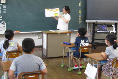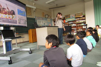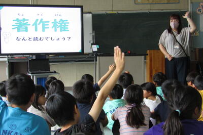 7月9日(火)2時間目に、2~4年生は音楽室で情報モラル授業を受けました。ICT支援員の髙山さんが先生です。