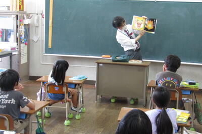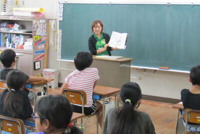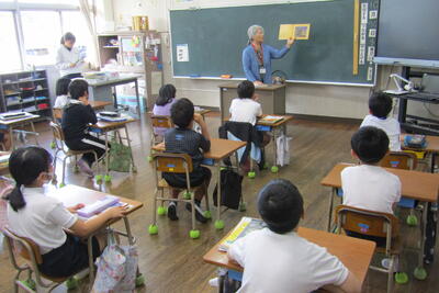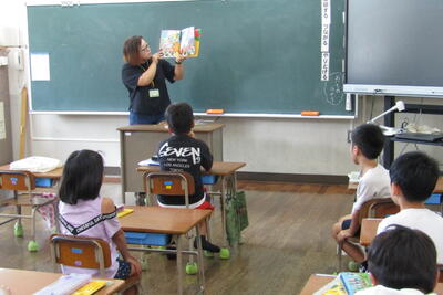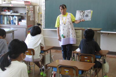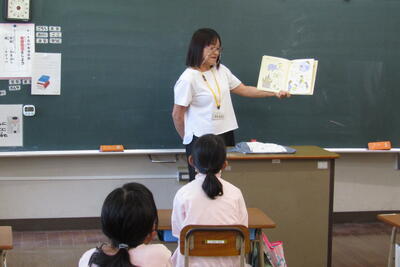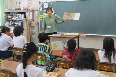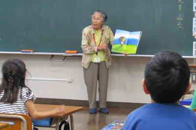 9月4日(水)、夏休み明け最初の朝の読み聞かせでした。今日は、沖さん、打越さん、永松さん、本多さん、前田さん、伊藤さんでした。楽しい話あり、真剣な話あり、先週の平和集会を受けた戦争のお話もありました。