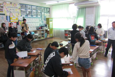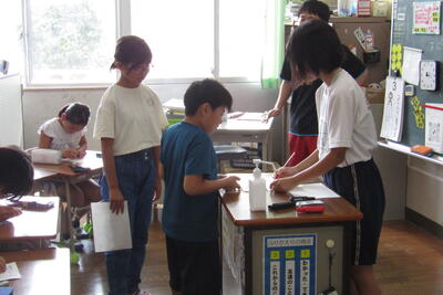 9月4日(水)の午後、南関中学校から5人の3年生が四小に来てくれました。中学校の学習の一環で、地域貢献活動の取組です。