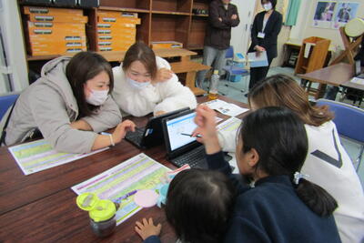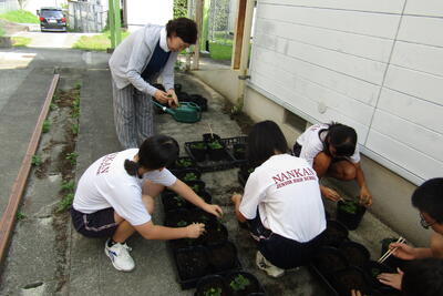 四小では、授業中の小学生の支援や、植物の苗の植え替えなどを頑張りました。