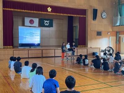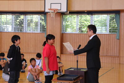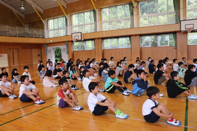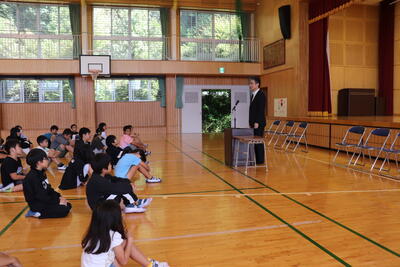 2時間目のあとに、体育館で夏休み前集会をしました。