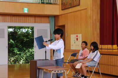 その後、各学年で取り組んだ人権学習の紹介アナウンスの後、学年代表による発表を聞きました。そして、希望者によるお返しの発表が続きました。
