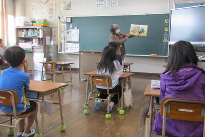いつもの読み聞かせに加えて、今日は「語り聞かせ」の方もいらっしゃって、子どもたちはお話の世界に引き込まれていました。