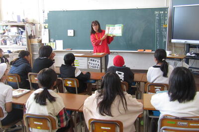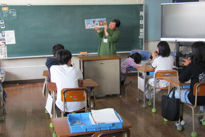12月18日(水)1時間目に、読み聞かせの会クローバーさんによるスペシャル読み聞かせがありました。