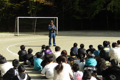 12月5・6日(木・金)に、A-lifeなんかんから、時吉さんが、体育の授業に来てくださいました。町の事業で、体育の授業を安全に、より有意義に実施するためにサポートしていただくのです。