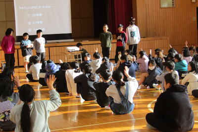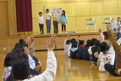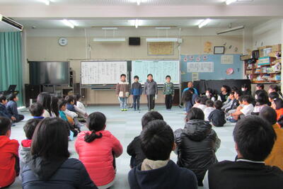 11月27日(水)の四小集会は、3年生と企画委員会の発表でした。