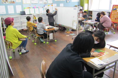 子どもたちが真剣に問題に向かっている様子が、後ろ向きの写真からでも伝わってくるでしょうか。