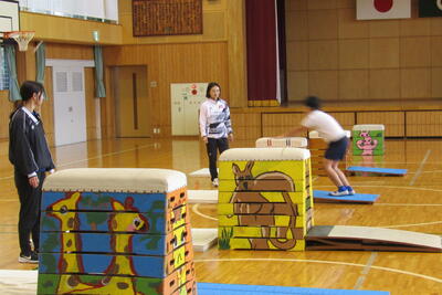 ダンスや器械運動を、学年に応じて教えてくださいました。わずかな時間でしたが、先生たちの指導力向上にもつながる、貴重な時間になりました。