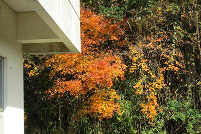 12月も中旬を迎えましたが、ようやく校舎裏の紅葉が見頃を迎えました。