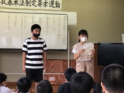 第1回目は、学習会リーダーを中心に6年生が決意表明を行いました。