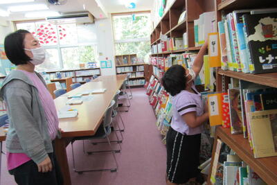早速、今日(7月29日(木))も、本を借りに来ている1年生、3年生、4年生がいました。スタンプラリーの台シールがずいぶん増えていました。