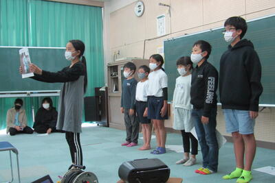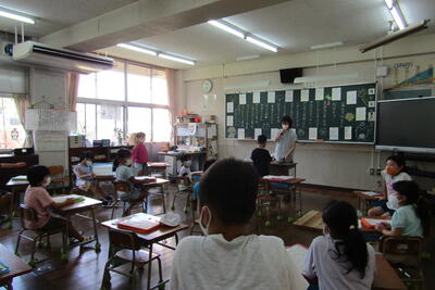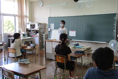 本日より、本校卒業生の先生が教育実習にいらっしゃいました。リモートで自己紹介をしていただきました。2週間、子どもたちと一緒に勉強をされます。