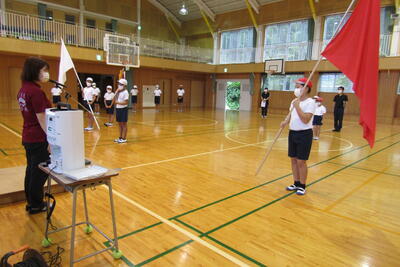 今年は雨の日が多く、なかなか外での練習が実施できずにいましたが、今日は本番通りの流れで実施することができました。