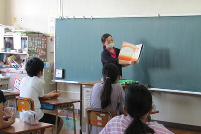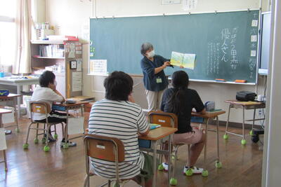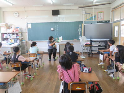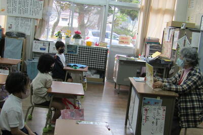 今日は、今年度、第2回めの読み聞かせがありました。読み聞かせの会「クローバー」のみなさま、ありがとうございました。子どもたちは、しっかり、目と耳と心で聴くことができました。