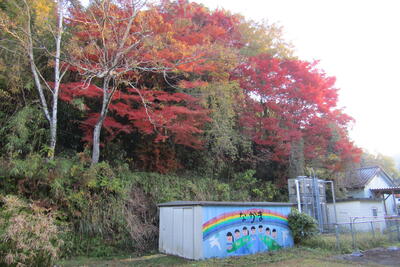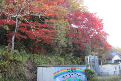 各教室から、北側の裏山のほうを見ると、ほんとうに真っ赤に色づいた木々が見えます。今が、見頃です。ぜひ、学校に来られた際に、ご覧ください。