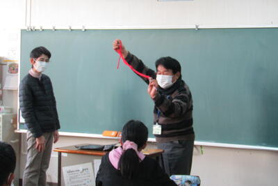 12月28日(火)、四小の玄関にも「しめ飾り」を飾りました。お正月にはその年の神様である「年神様」が、一人一人に1歳の年と幸運を与えるために各家を回るそうです。正月飾りは、年神様が家を見つけやすいように、また、気持ちよく家にいてもらうようお迎えするために飾り付けるそうです。