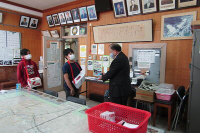 12月13日(月)から17日(金)まで、企画委員が行った「赤い羽根共同募金」へのご協力、ありがとうございました。12月23日(木)のお昼休みに、事務局である町社会福祉協議会から学校へ受け取りに来られました。校長室でお渡しをしました。総額は、おって連絡されるそうでうす。また、この募金の80%が南関町で役立てられるということでした。