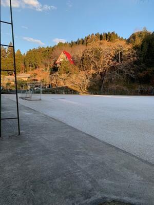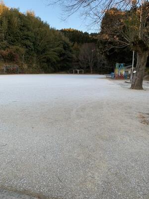 12月27日(月)朝、冬休みで子どもたちの声が聞こえない学校に来てみると、運動場が一面真っ白でした。日曜日の夜降った雪でしょうか、うっすらと雪化粧していました。こんな日もあるんだと記念に写真をとったのでお載せします。寒い日が続いています、風邪などひかれませんように。