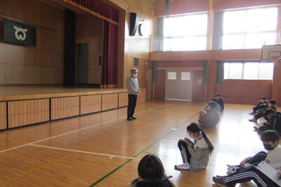 生徒指導担当の福田先生が、命を守ること、特に「自転車の乗り方に気をつけるように」と話しました。