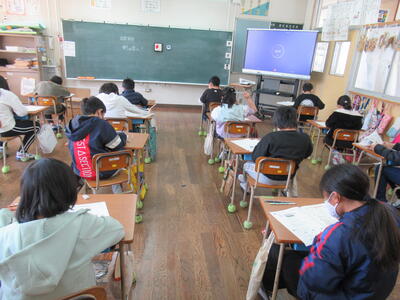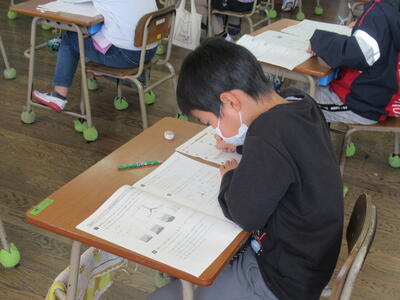 後日結果も返却されます。やって終わりではなく、間違えたところのやり直しや、苦手な分野の復習などを行い、次の学年への準備をさせたいと思っています。ご家庭でも、お声かけをよろしくお願いします。
