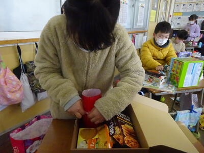 材料を工夫して集めるところから始まり、仮想の小さい友だちを設定して、その友だちが喜んでくれるような家を作っています。できあがりが楽しみです。