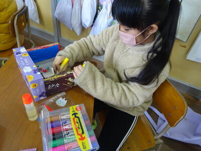 2年生は、図画工作科の時間に、「友だちハウス」の制作をしています。