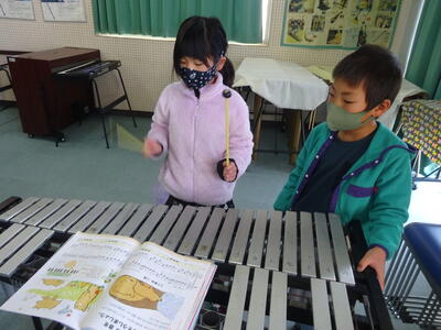 蔓延防止が延長されたため、鍵盤ハーモニカは使えませんが、グロッケン、木琴、鉄琴、キーボード、バスマスター、小太鼓、タンブリン、カスタネット、鈴、ウッドブロックなど、楽器を増やして演奏しました。