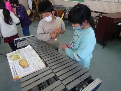 2年生は、音楽の時間に「こぐまの二月」という楽曲を演奏しました。