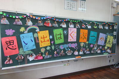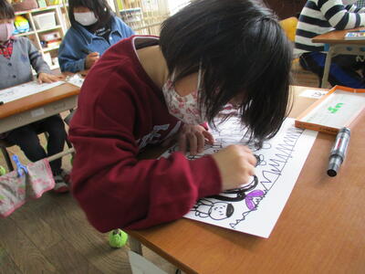 来年度入学してくる1年生に向けて、行事などの学校生活の様子を絵で表現しました。