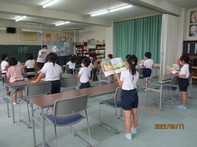今日は1年生の学校探険を行いました。