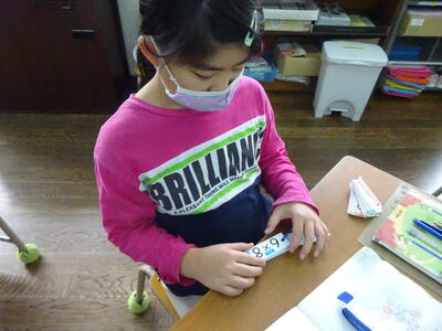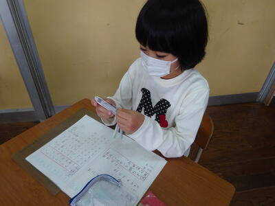 2年生は今、休み時間などのすきま時間を活用して、九九の徹底に取り組んでいます。