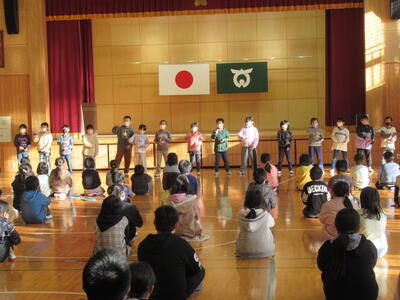 四小集会で、1・2年生が大変すばらしい発表をしてくれました。