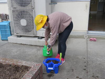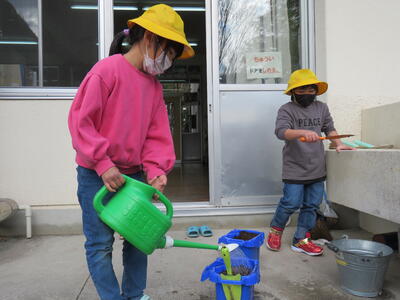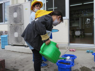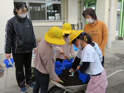今日は、寒い一日ではありましたが、日中は日が差してちょっとあたたかくなりました。そこで、1年生は、チューリップの球根を植えました。夏にはアサガオを育てたあの鉢に、今度は、チューリップの球根を一人二つずつ植えました。春には、きれいな花が咲きそうです。