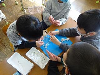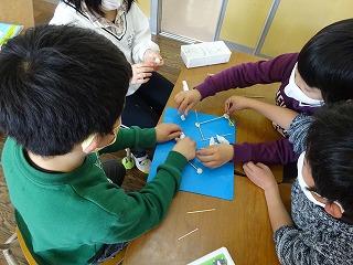 立体を作る活動を通して、立方体や直方体の構成要素である頂点や辺に着目しました。